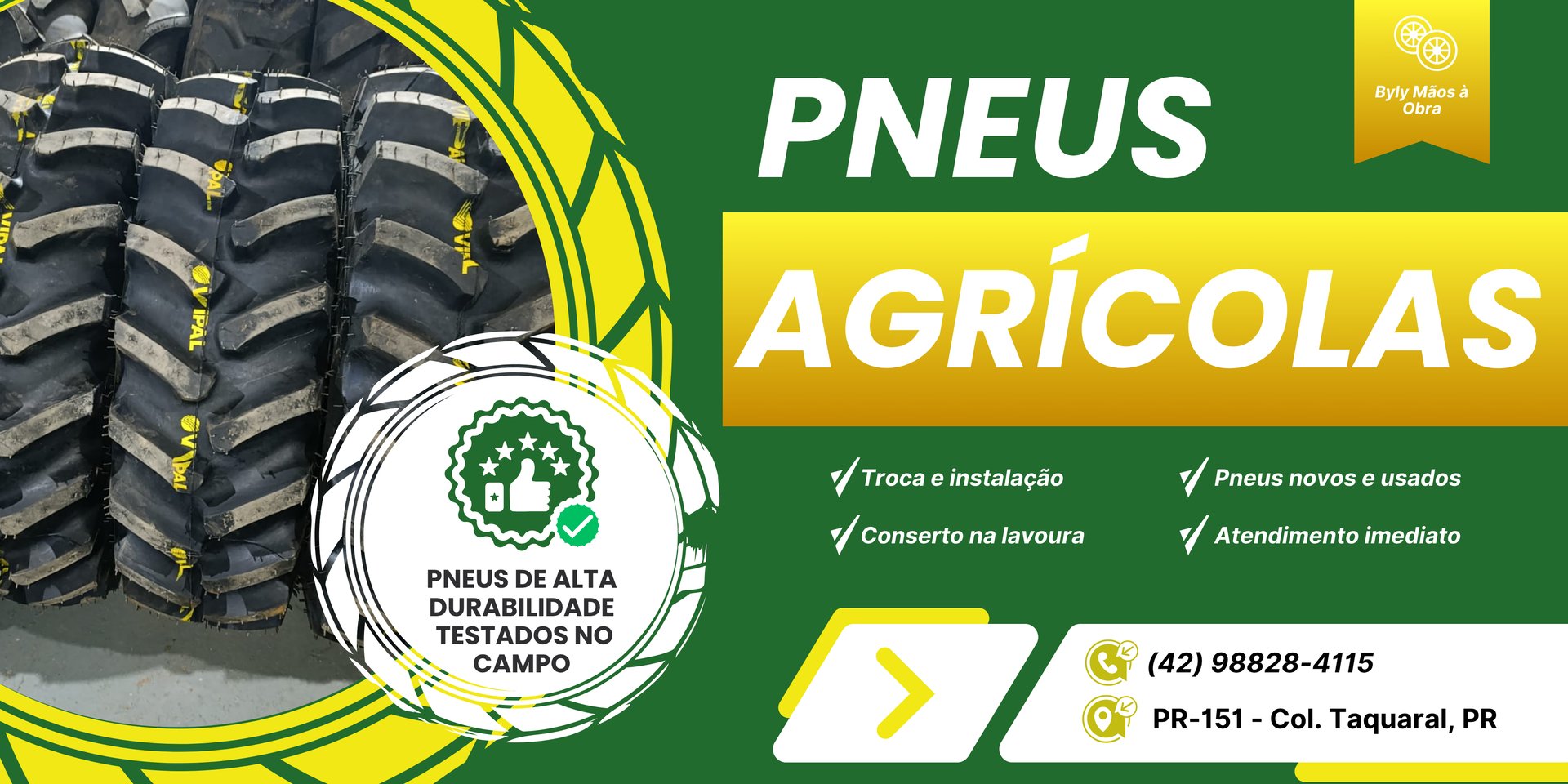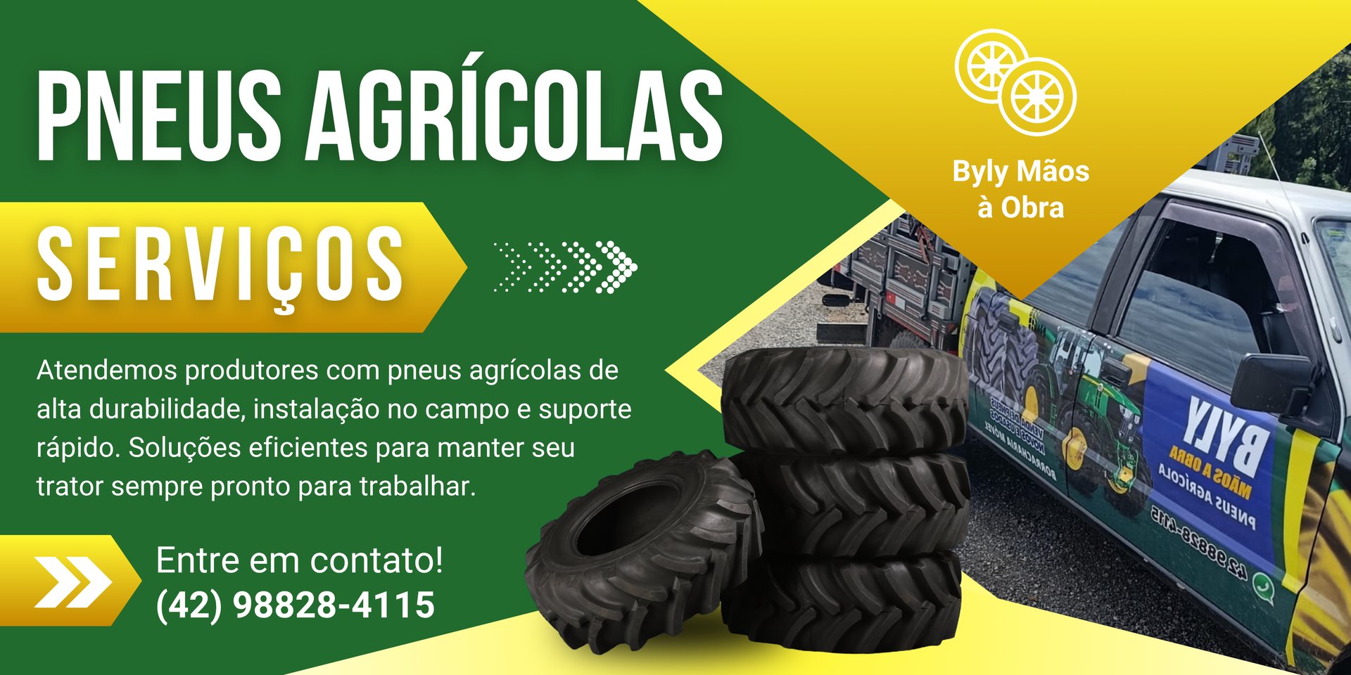 A Byly Mãos à Obra oferece pneus agrícolas de alta durabilidade, pronta entrega e atendimento rápido para garantir que suas máquinas trabalhem sem interrupções. Com variedade, qualidade e suporte especializado, você mantém sua produção ativa todos os dias, com segurança e eficiência.